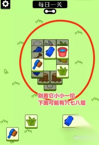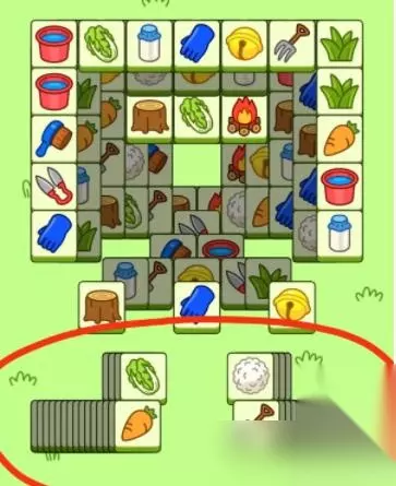 四行的最后一张牌翻出来之后,主要消上面大块的牌 而且你最好保证,一个道具都不用 为什么要留下四行的最后一张牌呢? 大家都知道道具第一格的用处是抽出三格摆上去,要用的时候就可以直接取用,相当于你原本七格的空间多了三格备用格 而那四行的最后一张牌也一样是备用格 四张牌面图案,你只要在其他地方搜寻到两格就可以立马消掉它,随用随取,用在最后紧要层峦叠嶂的结尾部分最好用 抽出三格的效果: