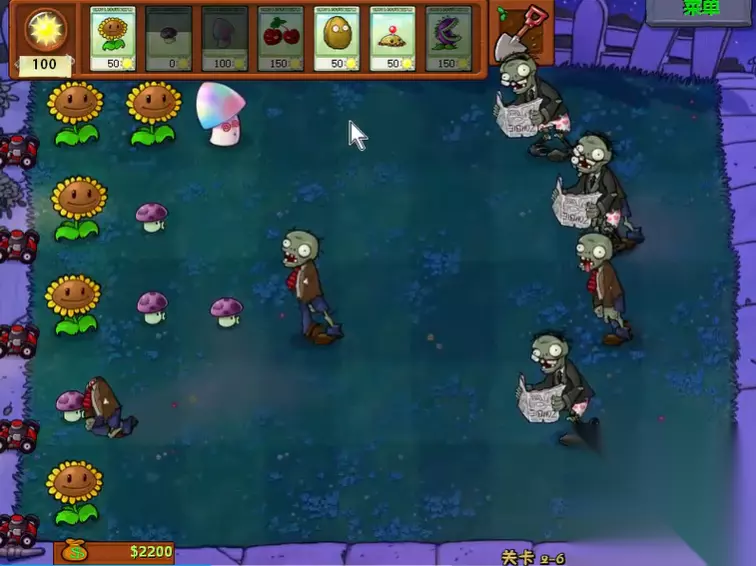 比如同时有多路僵尸突破防线,可以往僵尸密集处使用来清场。整个过关过程要注意保持各条战线的平衡发展,避免出现某一路防守过于薄弱的情况,手忙脚乱容易导致防线崩溃。当阳光充裕后,可以考虑将部分阳光菇挖掉,替换成双发射手或三管豌豆射手等植物来进一步增强火力。