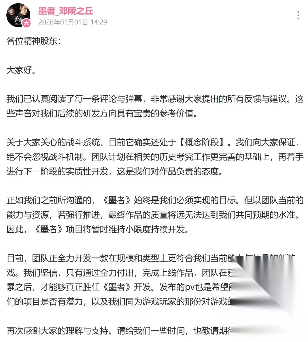【不效独侠,愿作众行之影】昨日,@墨者_邓陵之丘 官方发布游戏《墨者:邓陵之丘》实机演示。该游戏由【国产团队 禹诺互动】开发制作。该游戏的战斗系统目前还处于【概念阶段】。