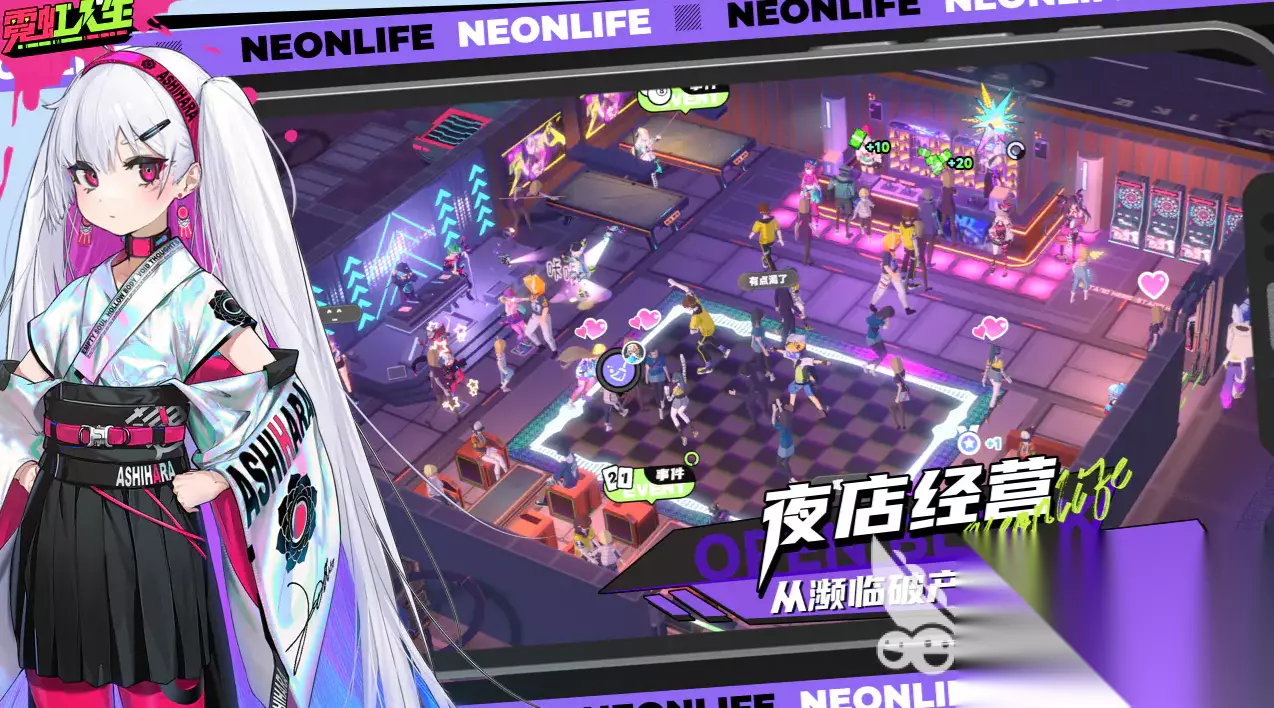 《霓虹人生》是一款由我们经典的二次元工作室“傲娇工作室”旗下研发的一款二次元模拟经营游戏,主打“赛博都市”与“街头文化”,在游戏中,玩家将扮演一名夜店老板,接管一家濒临破产的夜店,从小做起,与自己认识的各种伙伴们一起经营夜店,从一家名不见经传的小小夜店,摇身成为整个都市之中人气最为火爆的夜店。