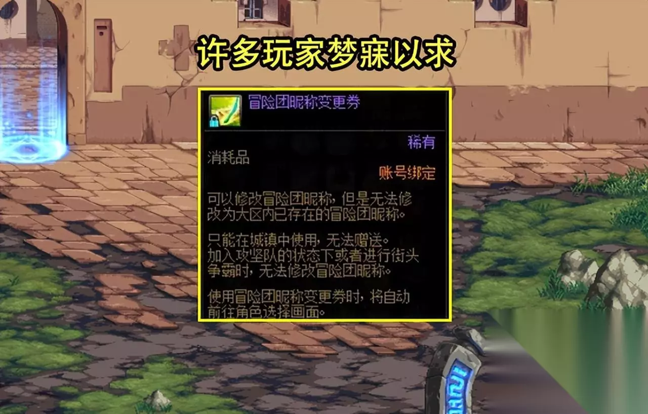 大家都知道DNF主要存在着两种更名道具,分别是宠物更名卡,以及角色更名卡!宠物更名卡和角色更名卡在商城都有出售,分别是280点券(3张),以及8800点券(1张),前者曾在活动加入过,可以白嫖,后者从未在活动加入,更换一次成本非常高,换算成金币需要花费5300W。 冒险团变更券非常稀有