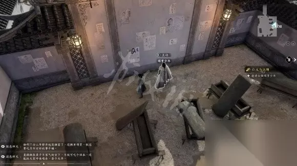 对话后前往悬赏墙与古怪领赏少年互动。