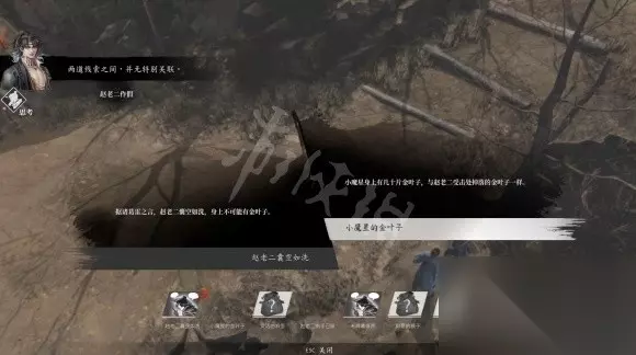与赵老二互动选择“这是你的金叶子?”失去金叶子获得线索。