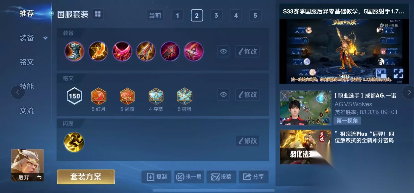 为了支撑高频的技能释放与控鸟所需的冷却缩减,核心装备组合以红色打野刀、冷静之靴为基础,快速叠满冷却缩减属性。后续装备则追求极致的暴击伤害,通常会选择两把无尽战刃来大幅提升暴击效果,再补上破军和破晓,这套出装能确保后羿在觉醒状态下,无论是对单体目标还是被大招分裂箭波及的多个目标,都能造成毁灭性的打击。