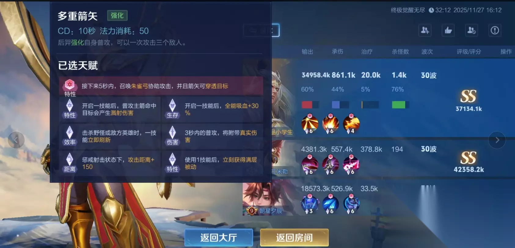 觉醒之战模式中,后羿凭借其独特的技能强化机制,衍生出了一套极具压制力的控鸟流玩法,其核心出装与思路围绕技能冷却、暴击与穿透构建,最大化强化后羿的全局掌控与持续输出能力。这套玩法的精髓在于对后羿觉醒技能大招的极致利用。通过特定的天赋选择,后羿的大招火鸟之翼能够获得自动释放、分裂以及更快的转向能力,实现所谓的控鸟或遛鸟,从而对全图敌人构成持续的威胁和消耗。