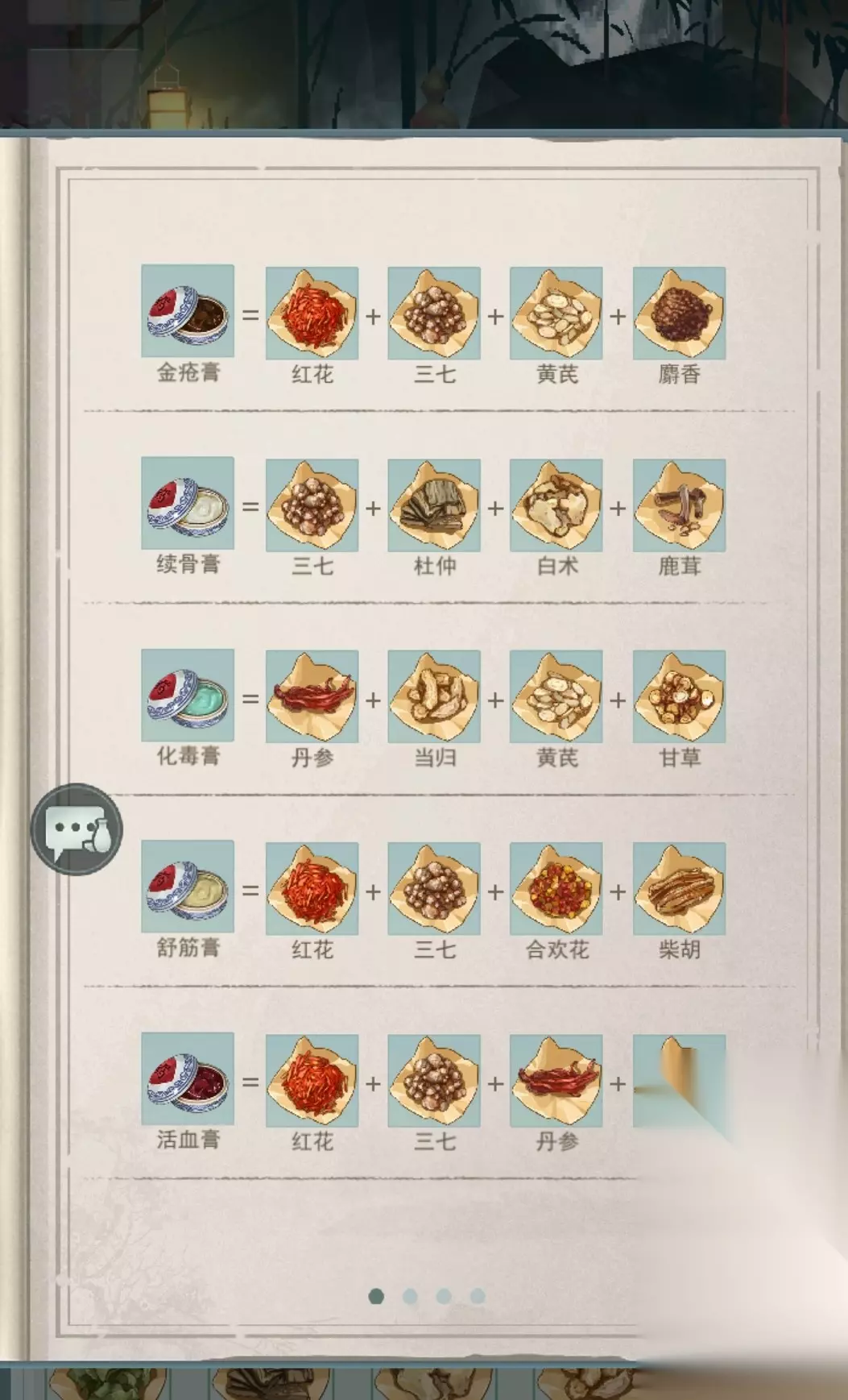 江湖悠悠是一款武侠手游,各位小伙伴可以在江湖悠悠的游戏中体验丰富多彩的江湖风情。在游戏中各位小伙伴可以自行闯荡江湖,为一名武林闻名的少侠。不过江湖中少不了打打杀杀,各位少侠受到伤害在所难免,因此就需要药品来治疗。接下来小编就给大家介绍一下,在江湖悠悠这款游戏中各种药品的配方。