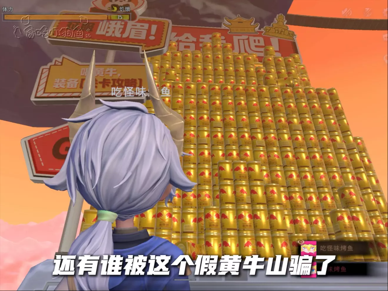 这是《超自然爬山模拟器》的游戏内容分享,展示了玩家在游戏里和队友组队爬山的过程,期间有分享食物、采摘蟠桃等互动,还能看到体力、负重等游戏状态,属于超自然行动组相关游戏玩法。