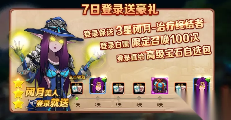 二、稀有角色及养成材料白嫖大法 游戏初期玩家最痛苦的莫过于卡牌过少,可以尝试的组合不多。那么如何能在短时间内快速免费抽取高价值卡牌,并且获得更加珍贵的养成材料呢?方法很简单,只需要每日领取7日登录豪礼即可! 通过点击主界面上方“7日豪礼”按钮进入到活动界面,点击领取当日奖励即可!