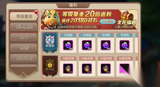 对钻石有比较大需求的玩家也可以购买等级或副本基金。