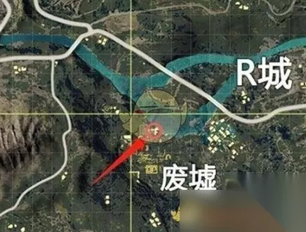 四、废墟 在河边位置可以找到比较隐蔽的高处,玩家在该位置不要骑车。