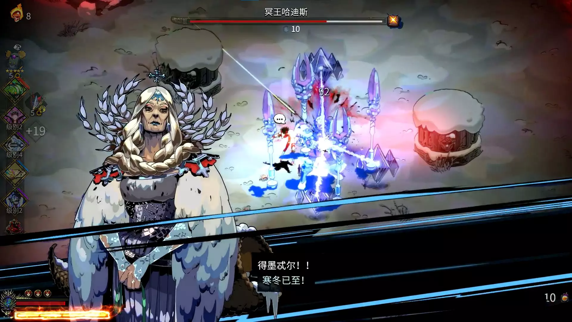 这是独立游戏《哈迪斯》的玩法攻略,分享了32热度下剑3的祝福搭配:冰投搭配猎普可获得冰寒射线,冰川极寒能增加冰投在场上的数量,还展示了赫尔墨斯、得墨忒尔的祝福选项及实战画面。