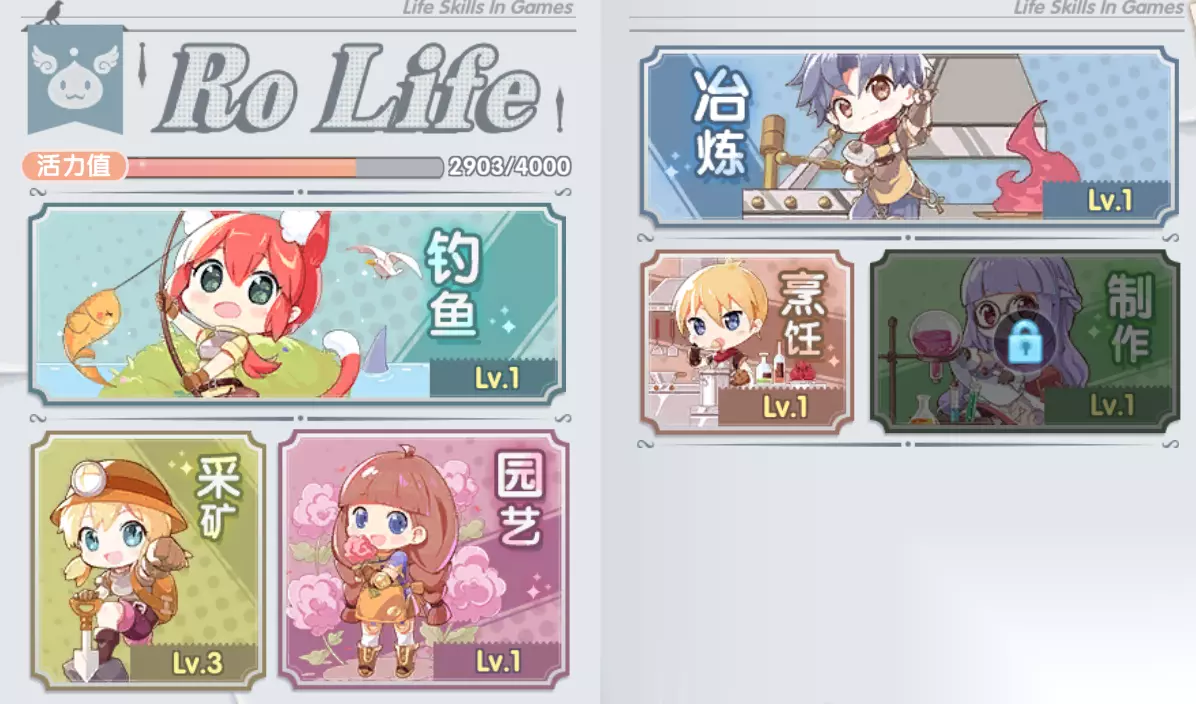 使用活力可以参与钓鱼、采矿、园艺、冶炼等多项生活玩法。通过生活玩法的各种产物,我们可以在游戏中提升自身实力,或者赚取水晶及Zeny。