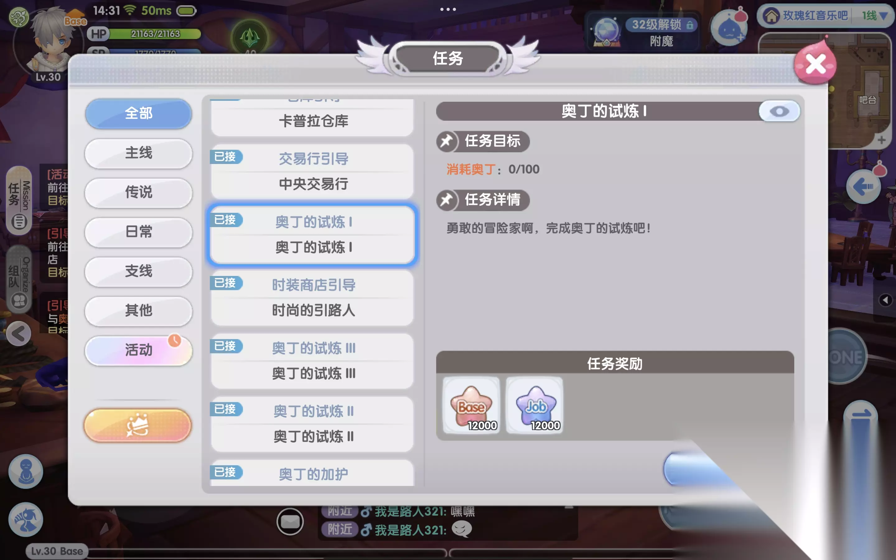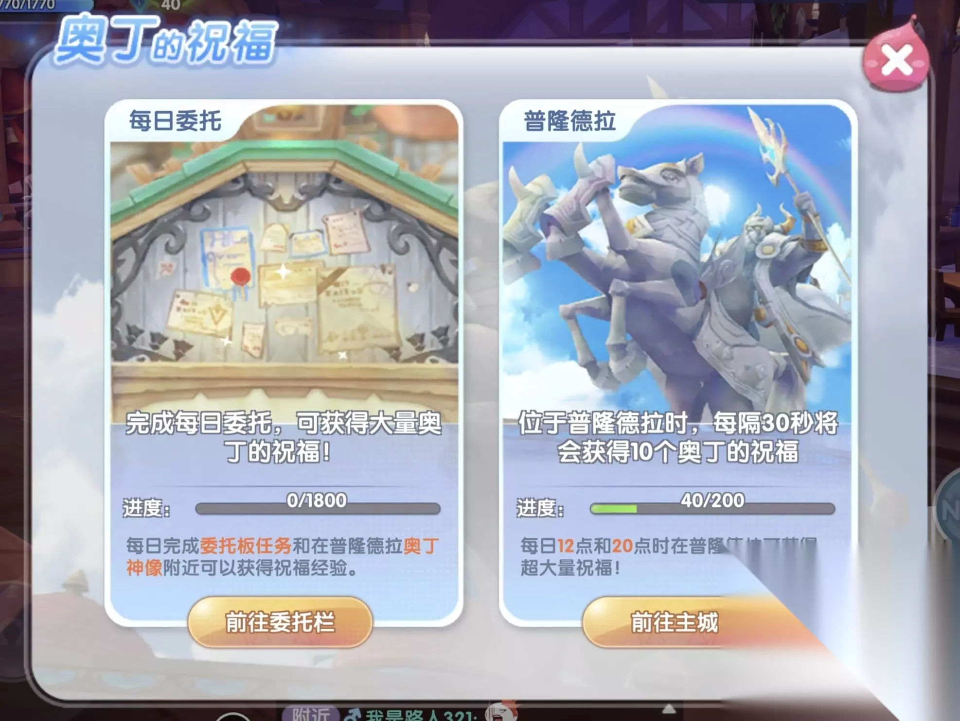 2、普隆德拉挂机 我们来到主城普隆德拉,奥丁的祝福就会不断增加,每天上限200点。不过,平时的增加速度会比较慢,12点或20点来到主城,可以一次性获得100点奥丁祝福。