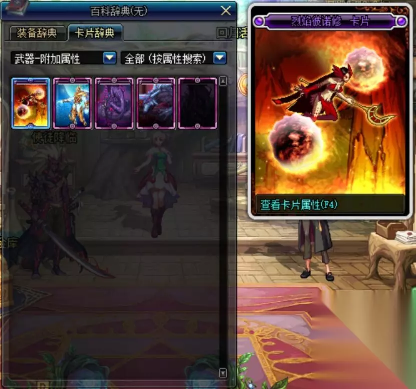只是现在的DNF中,属性攻击已经不再是什么稀有属性,各种神器卡传说卡又成为了玩家们的新追求。因此像火女这样的紫卡也沦为了白菜价,然而在DNF手游中,“烈焰彼诺修”这张卡片又重新焕发了第二春,不仅品级变成了粉色,而且属性也被大改了一番。