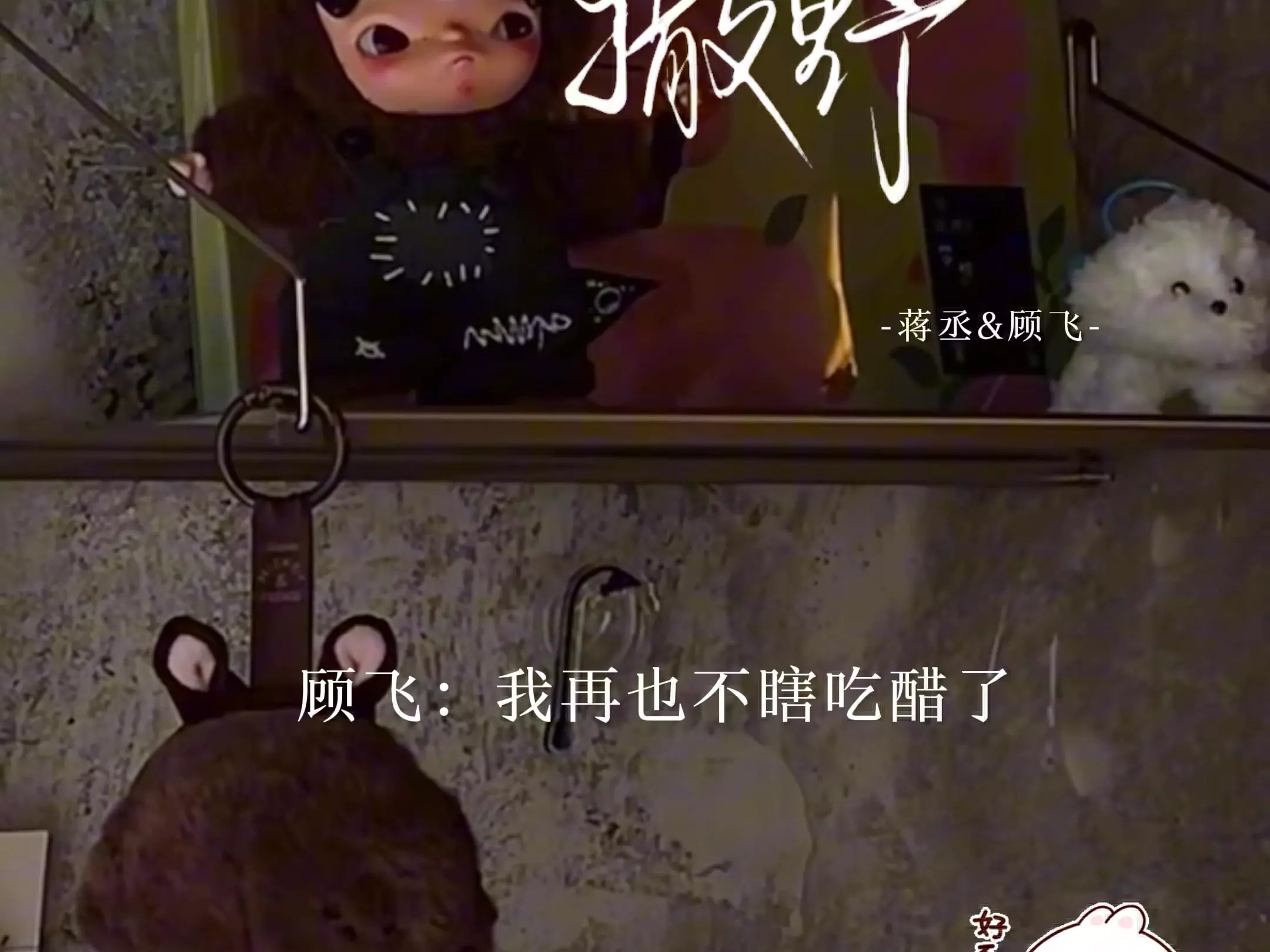 这是一则关于作品《撒野》的图文帖,分享了《撒野》中顾飞和蒋丞的同人手绘,图中呈现了两人温馨相处的场景,还配有相关趣味对话内容。