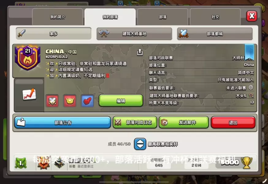 国际服大师一部落,满级奶,部落活跃,不定期福利,每周突袭币1600+,部落标签:#2GRPL0JL2