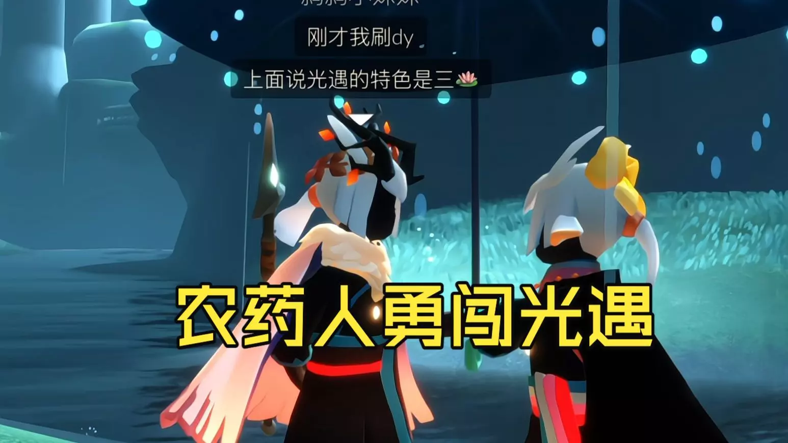 这是光遇花憩节的粉丝投稿,展示了投稿者和游戏好友小酌、小鱼在光遇里的相处日常,包含一起闲聊、听歌、结伴游玩等温馨的游戏互动场景。