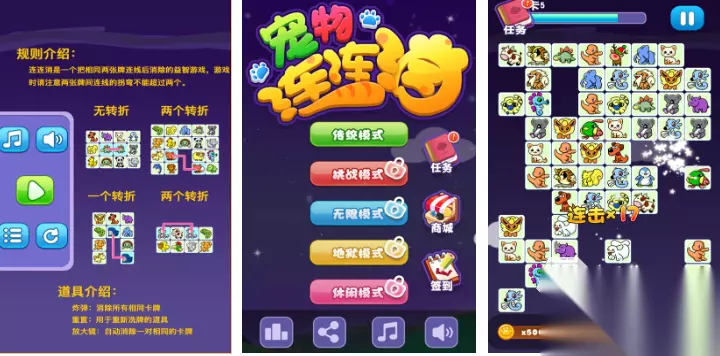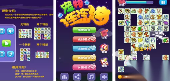 游戏具有别致的关卡设计,有超过40多种q萌的可爱动物形象,比如狗狗、小猫等,界面设计足够圆润,又非常细腻,最终营造出充满愉悦效果的视觉体验,消除时,动画特效展现的非常华丽,也很流畅,在限定时间内连接相同宠物,连线拐弯不超过两次,随着关卡逐渐推进,难度也会逐步增加,连续消除5个以上宠物,就能够快速触发特殊技能。 高速下载 普通下载 优先233乐园APP下载 3、《宠物连连看》