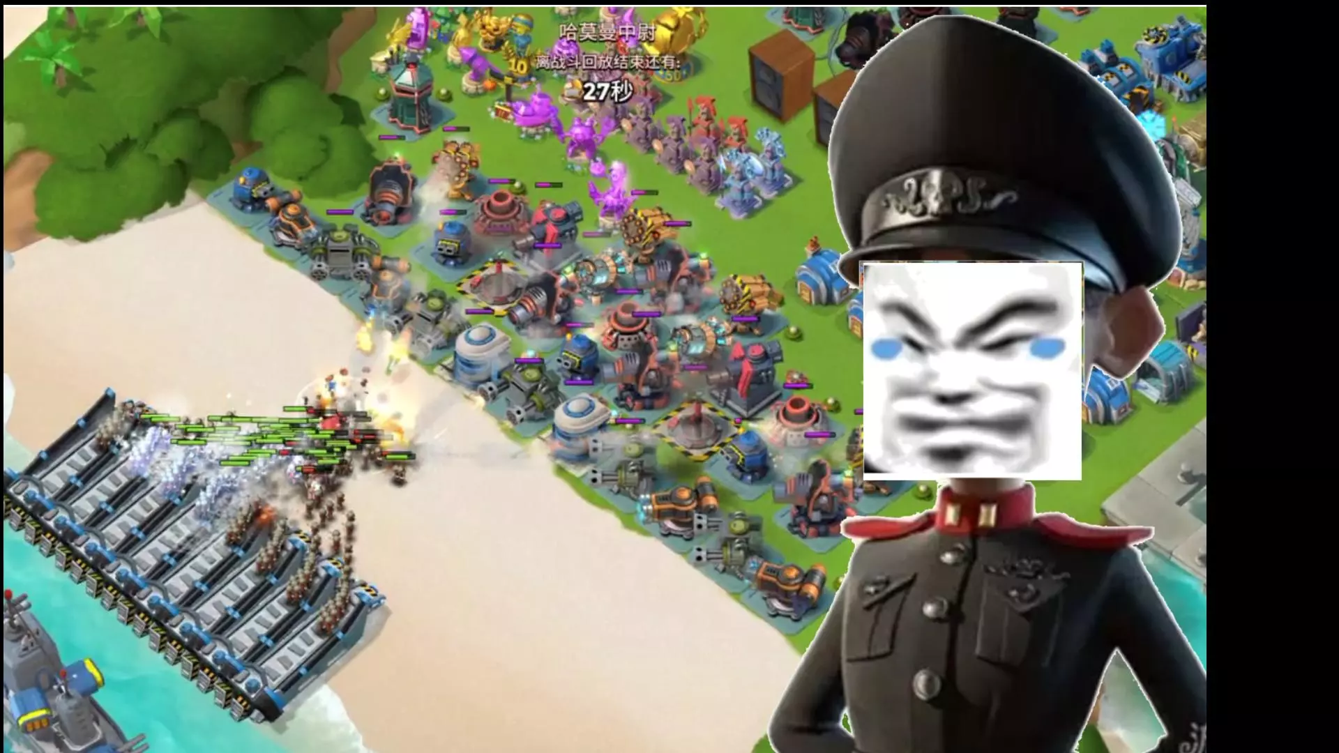 玩家分享《海岛奇兵》的游戏经历,提到模仿哈莫曼的战斗策略,却吐槽对手等级低,还展示了战斗回放画面与战斗损失数据,引发关于哈莫曼模仿玩法的讨论。