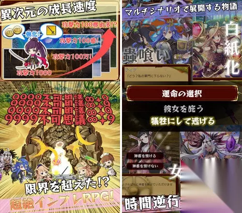 本作是一款只需要点击屏幕进行攻击的点击式休闲RPG,其最大的特点是数值上的疯狂膨胀。最大Lv99、攻击力9999的时代已经结束,个、十、百、千、万、亿、兆、京......不断膨胀的攻击力将让你感受到前所未有的爽快。感兴趣的玩家,一起以无法想象的攻击力来获得战斗的胜利吧! 如转载涉及版权等问题,请作者与我司联系,我司将在第一时间删除或支付稿酬。