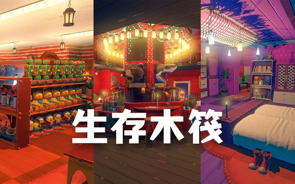 这是生存游戏Raft的相关内容,展示了玩家为建造木筏二层框架,在海底打捞碎片、收集材料,还进行砍树、烹饪等生存操作,以此筹备木筏二层框架的建造资源。