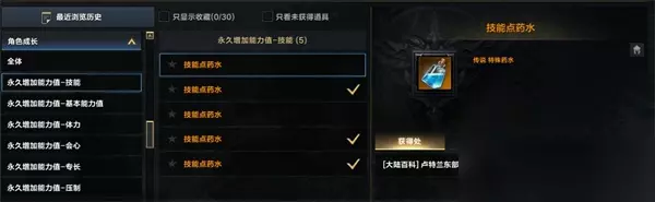 技能点获取一共分为两种方式,一种是升级角色等级获得,这种为单角色绑定,另一种则是获取技能点药水,这种方式获取的技能点则是远征队共享,本攻略主要介绍第二种,也就是我们技能点药水的所有获取方式;