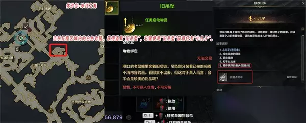 3、藏的很深的副头目: 任务地点:该任务位于休沙尔的冰封之海 获取方法:在冰封之海先接取任务“消失的朋友”,该任务为黄色连锁任务,且是开启技能点任务的前置; 做完后在下图最左侧的红框位置击杀小白鼠可以获得道具:旧吊坠,在背包中使用该道具,可以接取到“藏的很深的副头目”的前置任务“小儿子”,按照任务流程做完任务即可获得技能点药水;