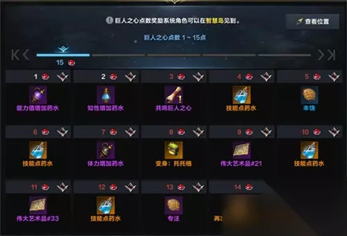 五、收集品 13、巨人之心: 收集满4个、6个、0个、12个巨人之心后可以在“智慧岛”兑换一瓶技能点药水,总计可获得12点技能点,智慧岛位于卢特兰东部右下角; 小编推荐:>>