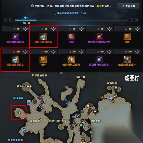 15、俄耳甫斯之星: 收集满2颗与6颗俄耳甫斯之星之时,可前往妮亚村寻找神兽阿尔比恩获得两瓶高级技能点药水,共12点技能点; 关于如何获得俄尔甫斯之星,可以在游戏内按ESC-收集品点数-俄耳甫斯之星,再将鼠标悬停在对应的图案上查看简单的获取方式。