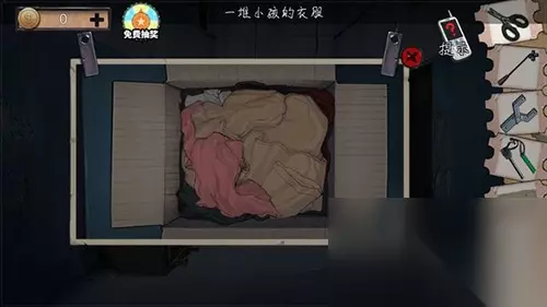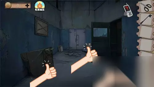 左侧打开衣服获得简单。 右侧水龙头处获得烙铁。 烙铁敲开门的玻璃打开门进入。 地上过去y型铁。 y型铁割开左侧沙发获得打火棒。 门旁边的箱子打开获得纸片。 出房间用打火棒点火炉。