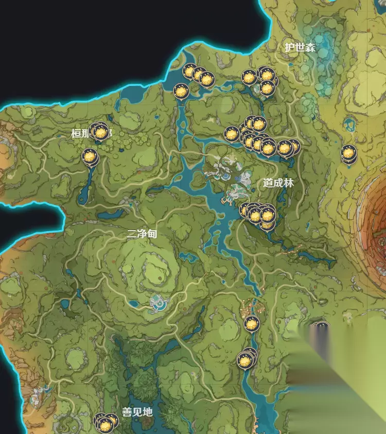 上图就是月莲的位置分布,月莲是提纳里的突破材料,想要培养提纳里的玩家可以提前搜集。 以上就是关于原神月莲采集位置介绍的全部内容,相信大家看完就能知道了,游戏还是非常值得大家去体验的。