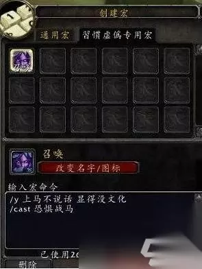 魔兽宏设置及使用流程如下: 1、首先按ESC,选择“宏命令设置” 一个是通用宏,一个是你的角色名对应的宏如图所示。