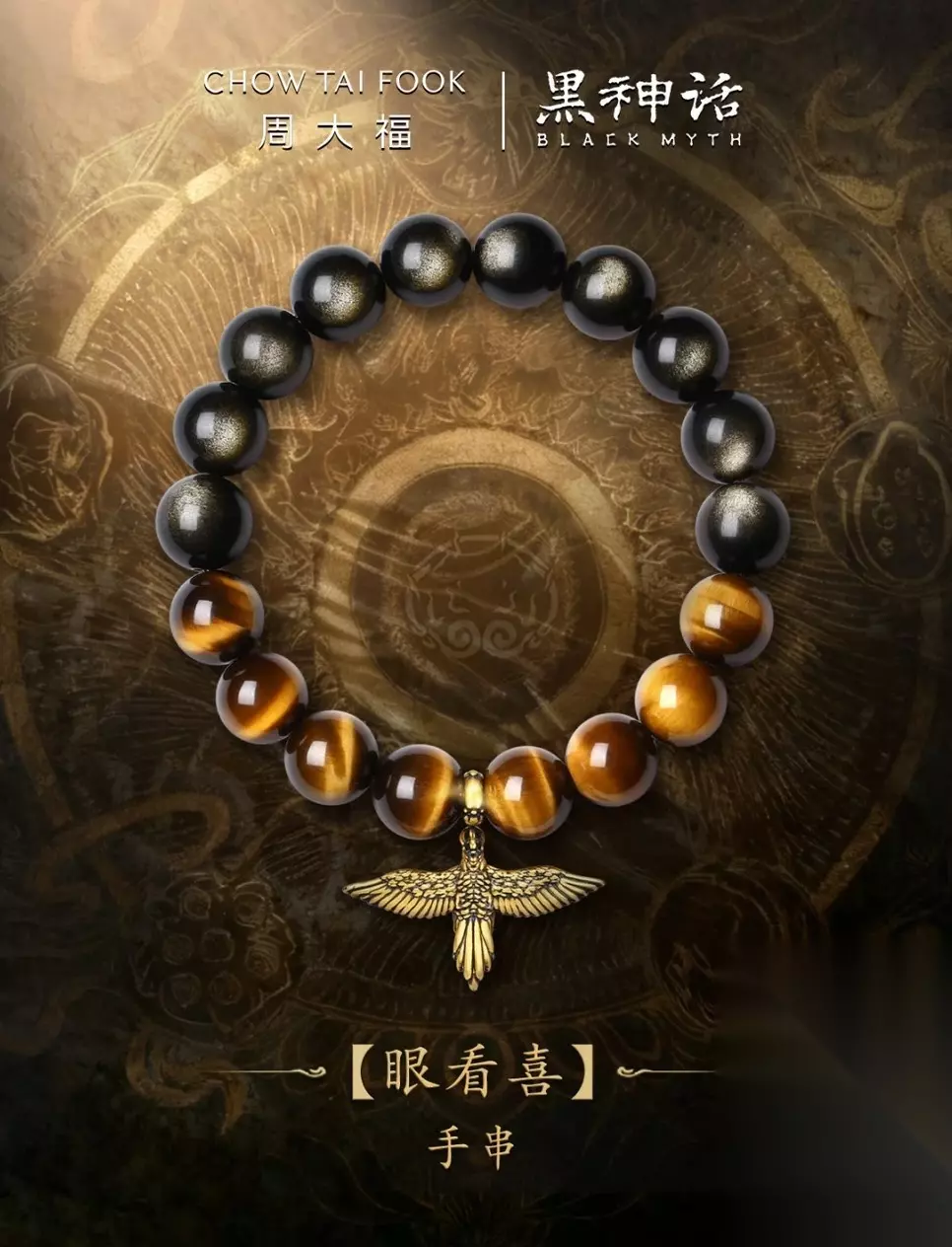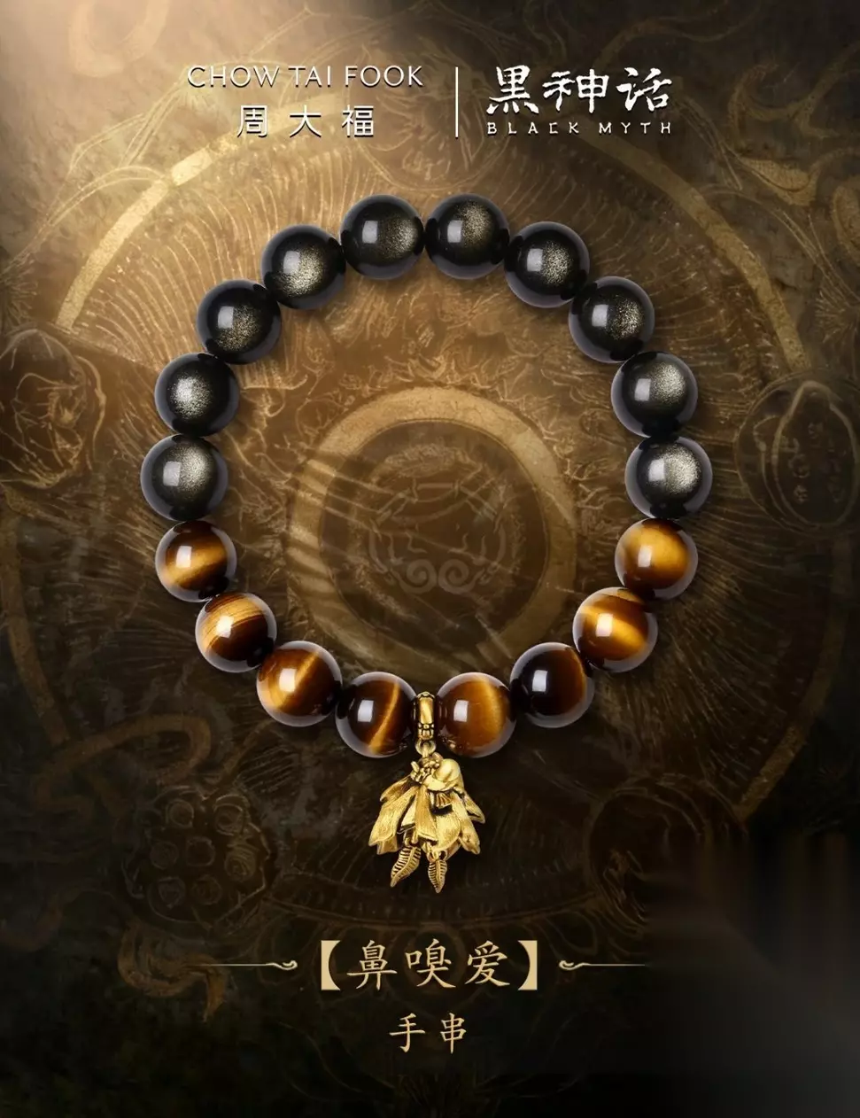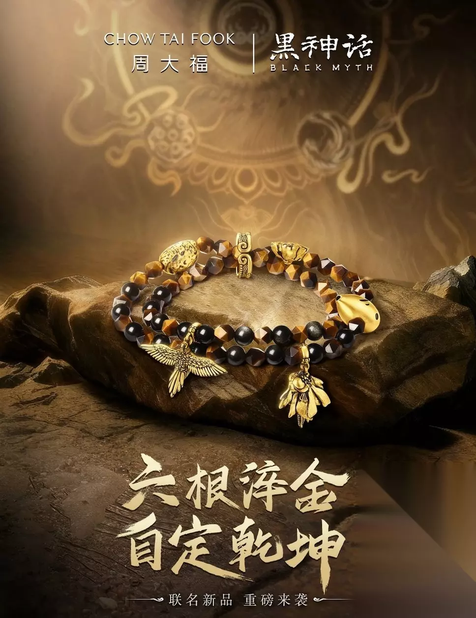 【周大福 ✖ 黑神话 联名六根齐聚黄金黑曜岩硅化玉电黑双层手链】官方售价:19900元