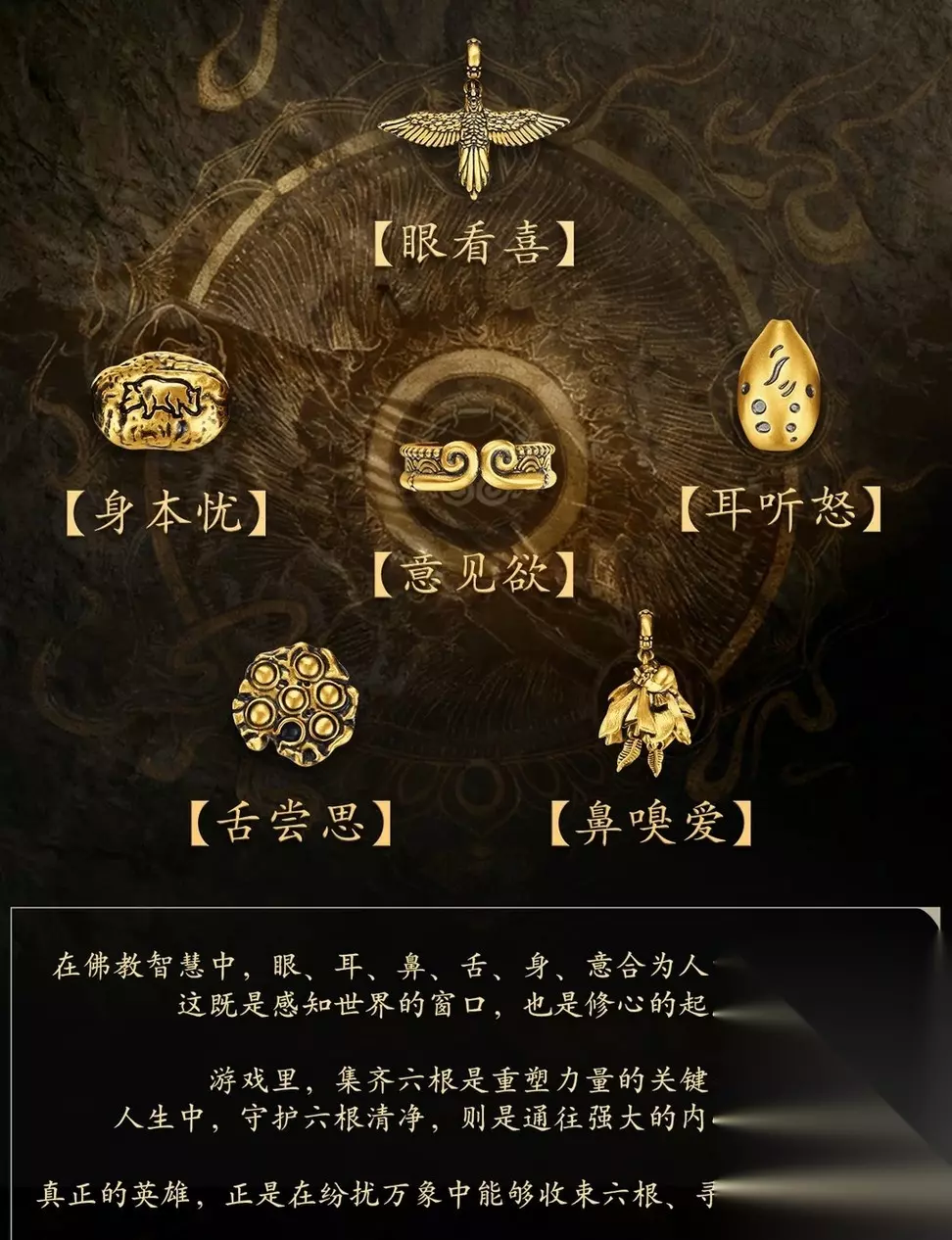 在《黑神话:悟空》的世界里,孙悟空的生命印记化作六枚“根器”:身本忧、耳听怒、眼看喜、舌尝思、鼻嗅爱、意见欲。 它们既是散落的残念,亦是重聚的线索,在这场宿命中,见证一场英雄的觉醒与重塑。 而作为护身渡劫法宝的“定风珠”,可在混沌中辟出一条清净之路。悟空执此一珠,便可在天地狂澜中稳住心神,驾驭逆境,而这份 “定” 的力量,也正是当代人应对纷扰所需的精神支撑。