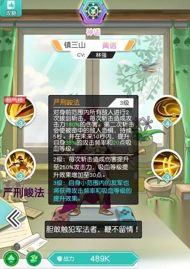 (图为黄信释放技能鞭鸾笞凤) 二、小技能——严刑峻法