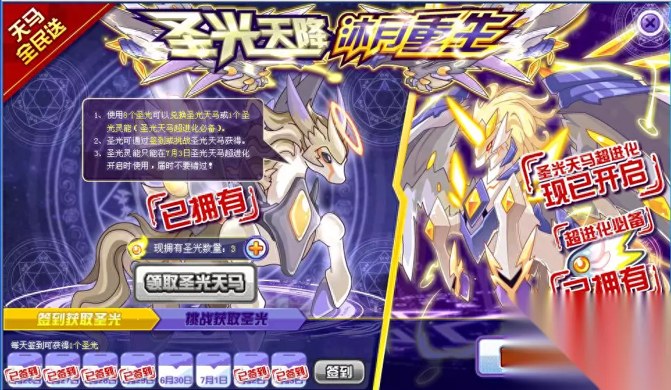超进化以后,圣光天马的出场就微乎甚微,即使是秩序之战它也是没有露过面。可见官方刻意雪藏天马,也深知过早的打出一张精灵就意味着要搭上一群精灵,没有整个族群体系的前提条件话,这个精灵就基本是写死了。而未来宇宙又会打什么位面战争,策划一波一波换人,我们又怎么预测呢?