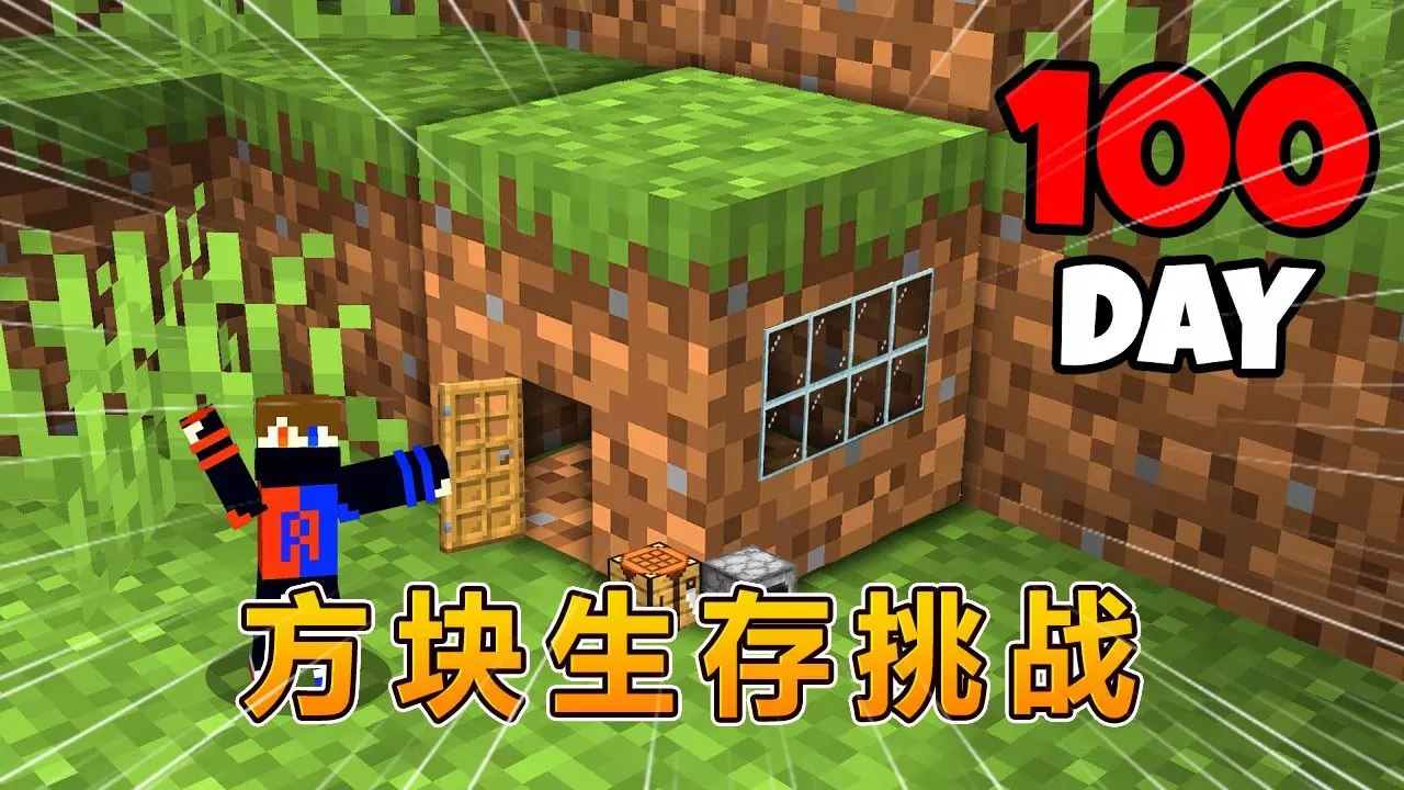 沙盒游戏 我的世界:挑战在一个方块内极限生存 100 天