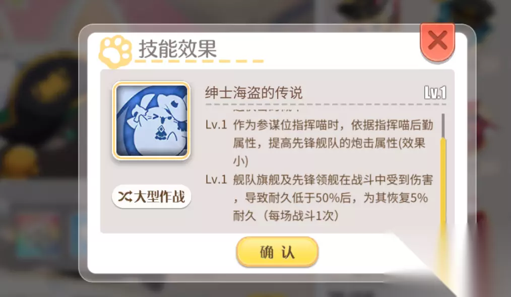 技能方面则可以提升舰队的机动值来变相提升规避伏击的概率,可以提升舰队炮击属性,并且可以在旗舰或者先锋领舰受到伤害导致血量低于一半的时候为其恢复5%耐久。