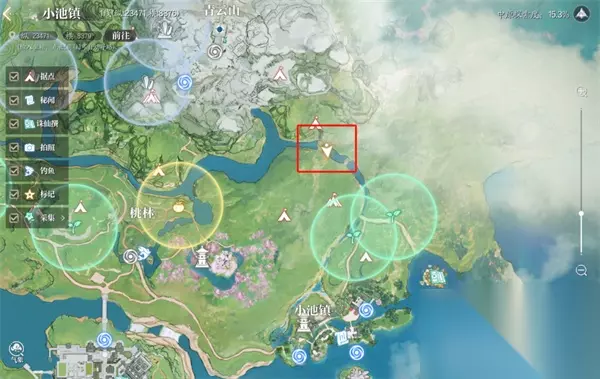 瀑下寻宝 坐标:(23471,8379) 打开瀑布下方水里的宝箱,即可完成奇遇 青云山脚下与小池镇之间的这部分区域,有一处瀑布。