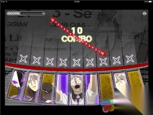 关于打歌部分,没什么好说的,与常规的音乐游戏一样,X形的符号会随着歌曲节奏落下,当X与下面的X重合时即可点击类似琴键的键盘,没有什么难点。但小编玩了几首音乐,总有一种按键不太好使的感觉,好几次明明都按到了,但是显示miss,不知道是不是我平板的问题……