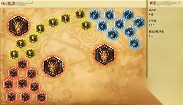 符文这里依然带标准的AD符文,红色固定攻击,黄色固定护甲,蓝色成长魔抗,大精华攻击力。