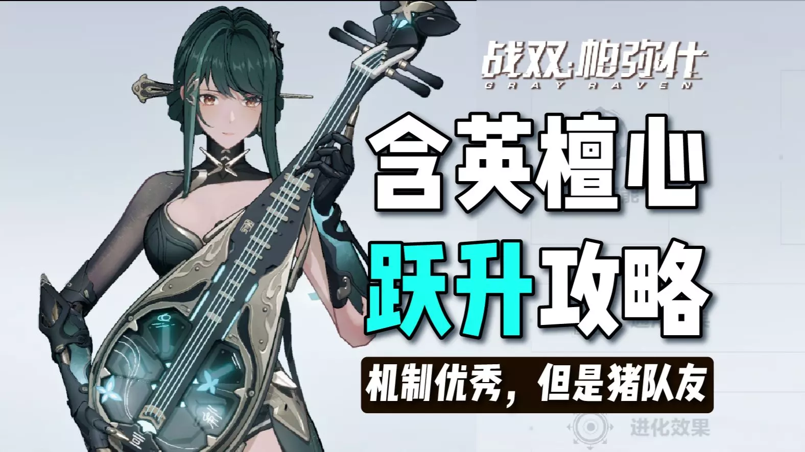这是战双帕弥什的游戏攻略帖,展示了含英檀心的养成面板,包括武器、意识搭配,还分享了该机体的常规与单C两种作战连招,帮助玩家掌握含英檀心的玩法。