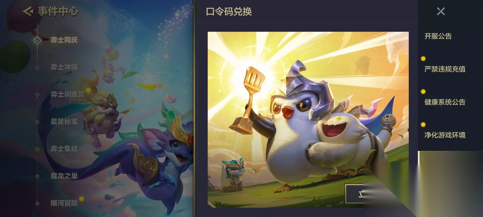 【金铲铲之战兑换码使用方法】 点击左侧【事件中心】,进入后点击右上角信息收件箱,其中找到【口令码兑换】或者【cedky兑换】进行兑换!