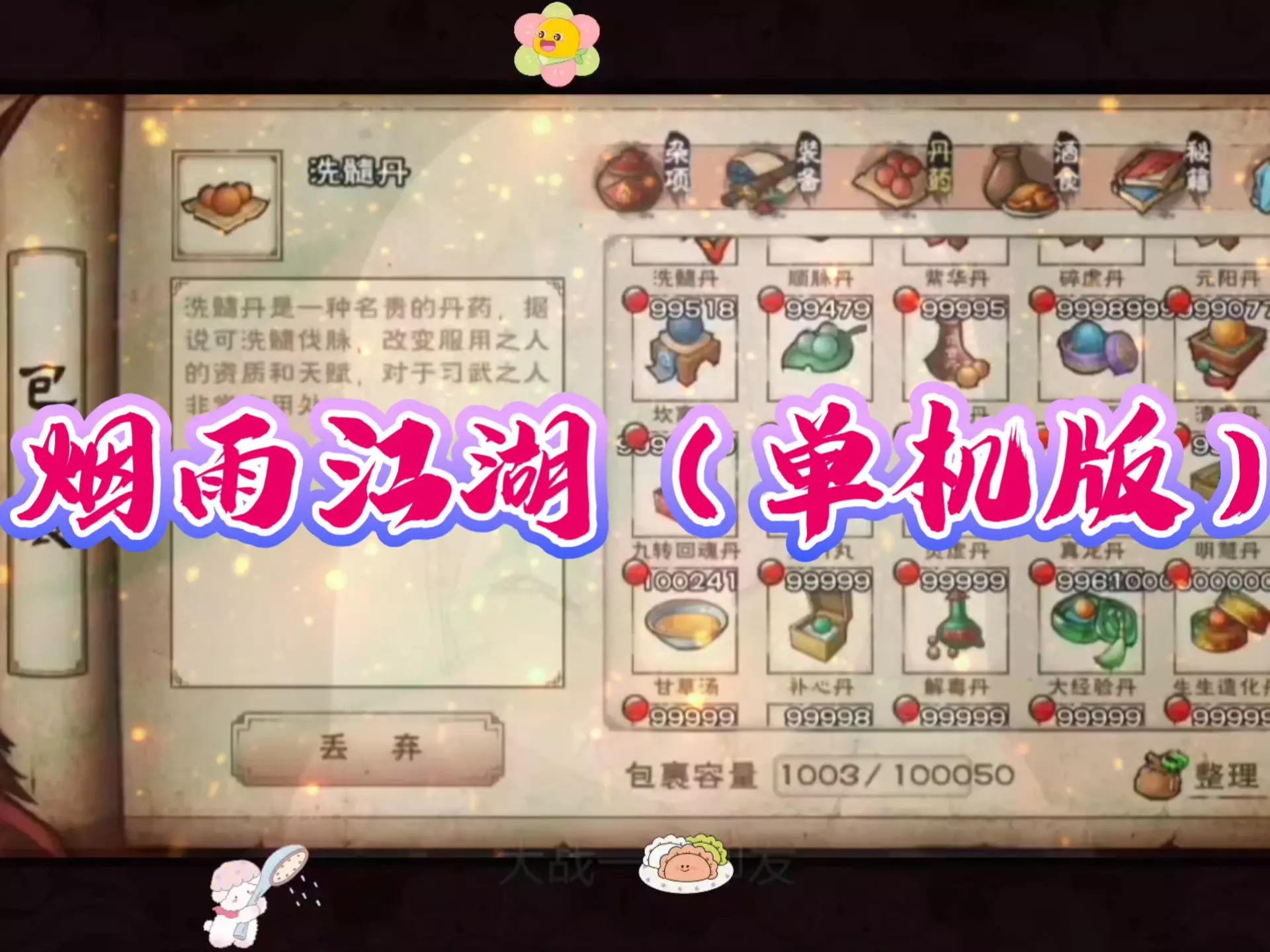 这是一篇《烟雨江湖》单机版的功能展示帖,展示了可选择紫清金丹等道具、输入物品ID/名称获取道具、包裹道具查看等功能,还显示了烟雨助手的存档相关功能,想要获取该版本可按要求三连。