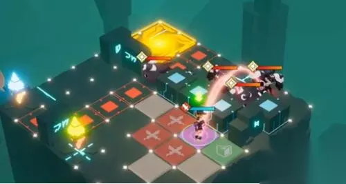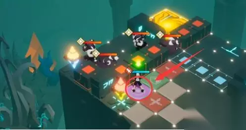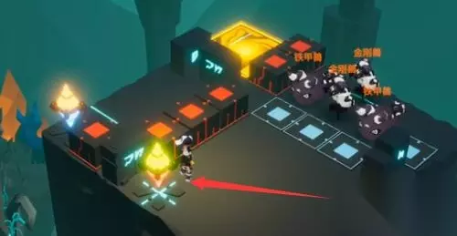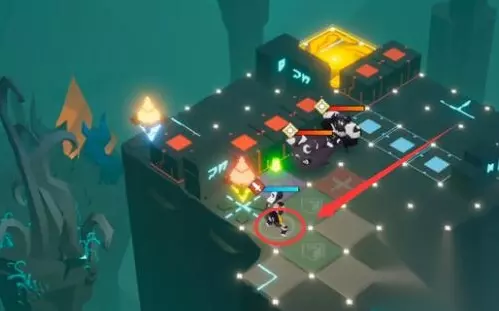 解密关卡1-5通关攻略 1、首先走到紫色格子的位置触发战斗,然后把墙内的怪打死。(如下图)