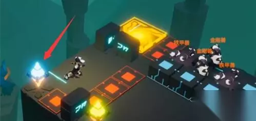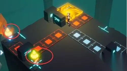 3、开启机关,把中间的升降机降下去,再走到左边开启蓝色的机关,把怪围在里面。(如下图)