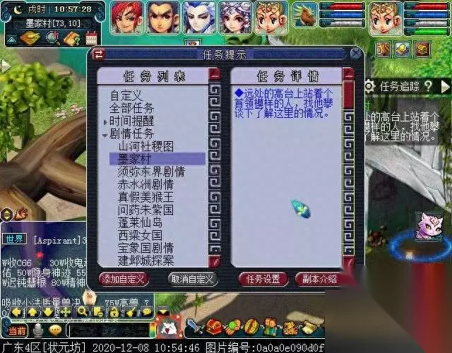 “墨家村剧情”是玩家达到120级后可领取的场景任务,透过一整个简易流程,玩家可以得知场景内各个NPC以及过去发生在墨家村的故事,并在探索的过程中收获一定的奖励,对于缺经验或成就党而言,这个剧情值得完成哦~那具体该如何达成呢? 剧情背景: 由于历史原因,曾经辉煌一时的墨家理论逐渐消亡,墨氏弟子迁居桃花源,从此不在现世。转眼已是唐朝贞观年间,四方臣服,天下太平。三界英侠多爱踏足人迹罕至之处,寻找别有洞天之感。一直不与世间来往的墨家村就在此时被发现,或因推崇墨家思想,或因向往机关术,众人纷纷前往。墨家村里的确有机关偶人的存在,但大多运用在生活中,用于协助做些简单农务。.... 领取条件: 玩家等级≥120级后,可于火焰山土地[大唐境外238,112]处领取剧情。 简易流程: 火焰山土地领取任务→巨子→小笛→莫夫人→马侍封→魏征→马侍封→小笛→莫夫人→尹孝乾→尹孝坤→巨子→机关人(战斗,685000经验)→袁天罡→阿米国师→布识陆→有来有去(战斗,753800经验)→布识陆→莫夫人→巨子→尹孝坤→尹孝乾→袁天罡→莫爷爷→巨子(战斗,855000经验,随机125召唤兽装备材料*1)→剧情结束。 任务奖励: 奖励固定,约230W+经验,125召唤兽装备材料(随机给图册或炼妖石),2点成就。 详细流程: 点击火焰山土地领取剧情任务,对话后传送进墨家村场景。