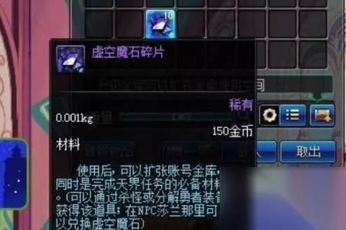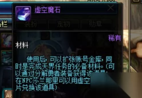方法二:莎兰处兑换 杀怪或分解装备会获得虚空魔石碎片,十个虚空魔石碎片可以兑换一个虚空魔石。