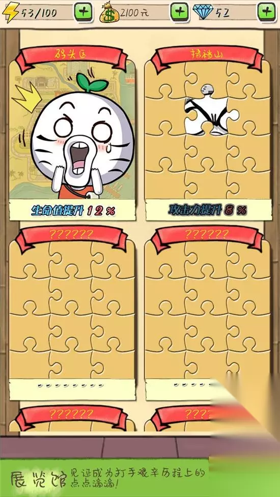在不食人间烟火的“节操都市”,为了能升职加薪,当上总经理,出任CEO,赢取白富美,走上人生巅峰,王尼玛在被神明拒绝后,毅然决然的加入了《滴滴打人》公司,开启了他完美的坑爹人生!转眼间圣诞到了,在CEO道路上打拼的王尼玛也是卯足劲的开黑! 王尼玛在《滴滴打人》中奋勇斗敌的样子帅气无比,即使被打烂脸也不能掩盖他帅气的光芒……这款无处不体现暴漫风味的游戏,对于广大暴漫粉丝来说,这无异于一盘饕餮盛宴。而唯一的英雄王尼玛,在游戏中更是表情丰富,嫣然是表情包爱好者的绝佳选择。然而很多隐藏中的王尼玛不少小伙伴们都忽略了他……。 一、收集碎片:解开展览区背后王尼玛的真面目 《滴滴打人》的故事背景是在宇宙最强都市——节操都市!所以玩家进入游戏后,背景就是繁华的都市,这里车水马龙,烟雾缭绕,当然,不是北京雾霾……英雄王尼玛就穿梭在云层中,时时关注人们的生活,哪有危险哪就有王尼玛!而这样的大城市背景下,点击左下角王尼玛,可看到多副面孔的王尼玛——心机boy、柔弱boy、贱贱boy、奋斗boy…… 当小伙伴们打过一定关卡后,得到S以上的评分即可获得碎片,在屏幕左侧点击“图鉴”,即可看到碎片收集情况,每个碎片展览下都会有不同的王尼玛哟~当一块展览收集齐全后,即可拨开云雾,见到更广阔的地图区域!切记,没得到S及以上评分的小伙伴是无法获得碎片的哟!