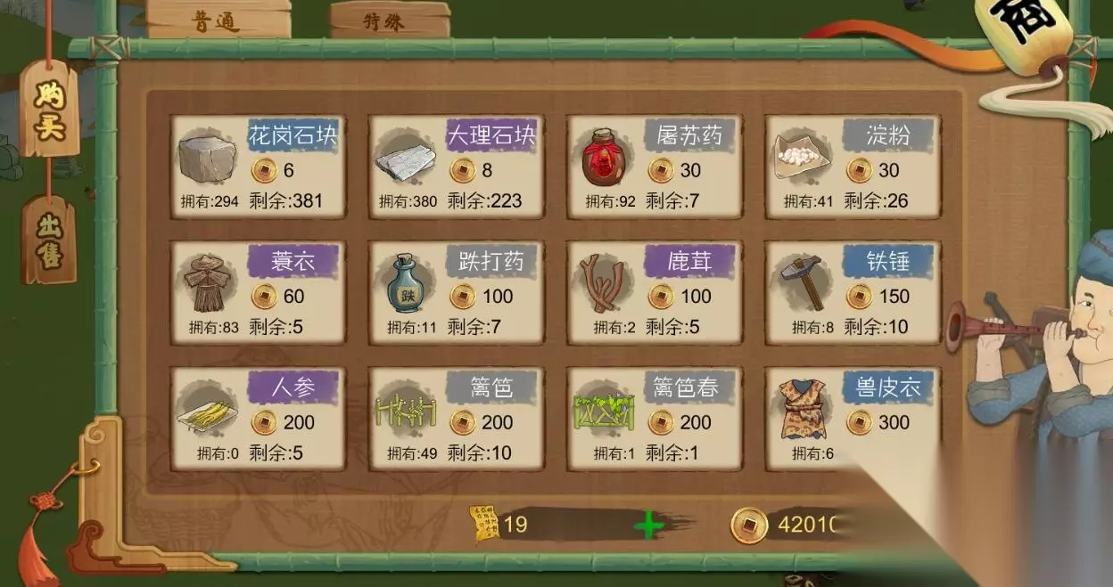 桃源记商人多久来一次 商人介绍: 1、商人出现是没有规律的,隔一段时间就会来一次; 2、商人到来的时候,左下角消息会出现一个小篮子; 3、有消息提示之后,你可以在在地图上找到一个走来走去的蓝衣服的商人,点他就能弹出商店页面了。 桃源记商人购买什么好 1、一般建议买两三个二级药防身就行了,其他都无所谓。 2、不建议买一级药,一级药可以自己做,而且用得很快,你的钱包顶不住的,